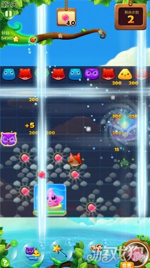除了消除云朵中的冰棒可以释放能量。在关卡中还有海星的出现。当海星全部消除之后,海星还会释放出许多的冰棒出现,这些都是可以帮助我们积攒能量值的。当然海星还会释放出增加步数的元素呢。