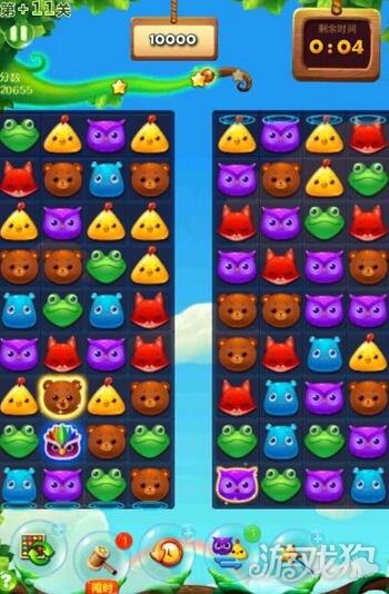 玩加11关,你只需要比平时玩游戏时快一点点就行。开局进游戏,的确得快,没好的机会做特效组合就快速消雪快,打开雪快缺口,2个目的,利用右下的藤条里的炸弹做4T或者5T,当然也是为了后面做出55,55能消更多的元素上分做准备哦。这关把雪快消了后不要慌,慢慢来,特别是有鸟架子时稍微思考下,不要让连消把到手的鸟儿弄飞咯!!!同样,出55架子时也得考虑下哦。这关主要上分途径是5+特效的组合分和特效分还有特效消元素的分。如果这关50秒左右时做出个55,那恭喜你,裸3机会很大咯,再做个5+组合就够了。