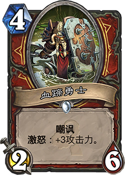 需要鞭挞它,炉石传说血蹄勇士作战说明。这张卡牌的强大在于,它激怒以后,可以获取三点攻击力,就能变成五点攻击力,这在四费当中属于高攻。因为这张卡牌是战士专属,所以其他职业意外获取这张卡牌,也难发挥出价值,法师除外。至于这张卡牌究竟如何,接下来会详细说明。