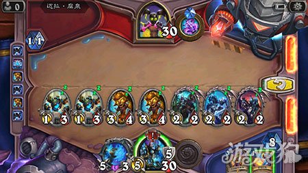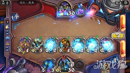 第三部召唤另一个树精,释放技能召唤骑士三,此时我们的场上已经满了,需要用锤子锤死一个自家机器人(反正机器人也没啥用),然后因为释放了锤子法术,可以触发大富翁的技能,恢复技能使用。