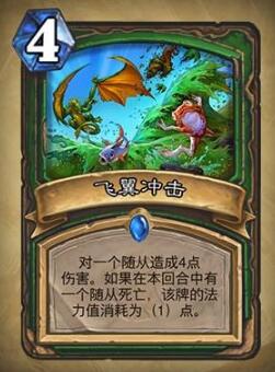 所以我推荐钟情印记的朋友带一张就行了。而我为什么选择飞翼冲击呢?因为我们有突袭怪在手或者场上可以卖怪的时候,都可以触发飞翼的1费效果,在解场上就显得比印记强一些,而我们这个卡组很多时候其实前期混的好就可以一波带走了,我认为这个一费的节奏对于前期还是很重要的,所以我选择飞翼冲击。当然考虑到现在天梯复活翻倍牧非常的多,所以大家在这种情况下(总是遇到翻倍牧,过不去墙而输)也可以把飞翼冲击换成印记来防一下。