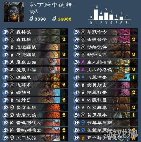 今天给大家分享一下补丁后的中速猎,这套卡组不存在什么天敌卡组,只要有一个思路引导着,传说是绝对没有问题的。由于版本补丁的问题,那我就先在这里小谈一下关于我对补丁的想法。这次被削的几张卡直接导致被削的几个卡组中,中速猎可谓是受损最小的,只有一张解牌被加了一费,无伤大雅。非奇骑和法术猎混合猎还有唯一偶萨的打击可谓是最大的,爆发和解场的延后对这些卡组都是致命打击。