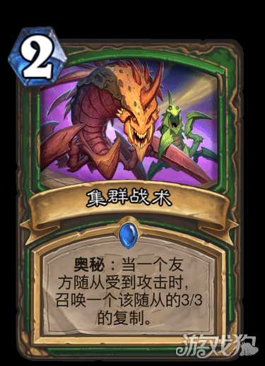 炉石传说外域的灰烬新卡已经公布的差不多了,其中的猎人蓝卡集群战术是一张怎么样的卡片呢,猎人蓝卡集群战术有什么效果,值不值得入手,就让我们一起来看看今天的攻略吧。 猎人蓝卡 集群战术 卡牌费用:2费 卡牌属性:法术牌 类型:法术 稀有度:稀有 系列:《外域的灰烬》 职业:猎人 制作费用:100 / 800 (金卡) 分解的价值:20 / 100 (金卡) 卡牌效果:奥秘:当一个友方随从受到攻击时,召唤一个该随从的3/3的复制。