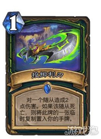 炉石传说疯狂的暗月马戏团新卡已经全部公布,本期介绍的是恶魔猎手稀有法术投掷利刃,,不少玩家还不是很清楚,本期就随小编一起了解一下吧,希望对于各位朋友来说有所帮助。 投掷利刃 对一个随从造成2点伤害。如果该随从死亡,则将此牌的一张临时复制置入你的手牌。 非常灵活的一张牌,可以加入卡组。 以上就是本期内容,更多相关资讯请关注游戏狗。
