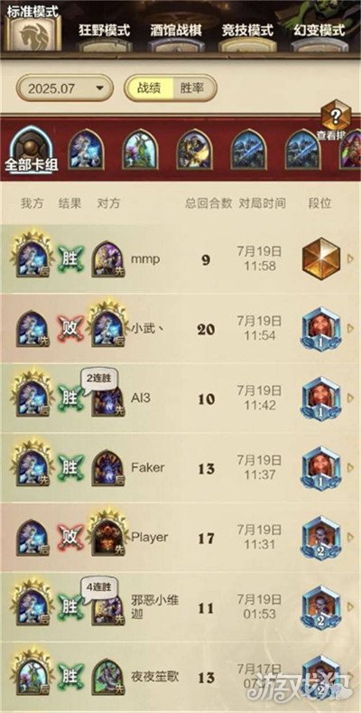 近期补丁环境中,元素法强势回归标准模式。凭借一套节奏紧凑、打点稳定、费用低廉的速攻体系,该卡组在当前环境下取得了约60%的胜率表现,是上分的优质选择。
