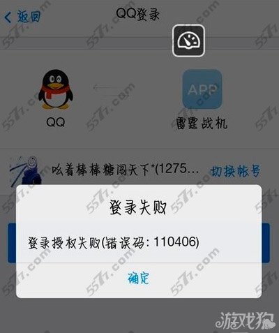 玩家在进入雷霆战机游戏的时候,登录出现授权失败错误码(110406)!如:玩家在早上玩了一会,结果就不能登陆,但是可以用微信登陆。只要用QQ登陆方式就提示授权失败110406.换了QQ号还是一样。