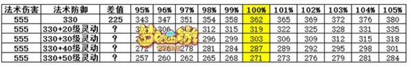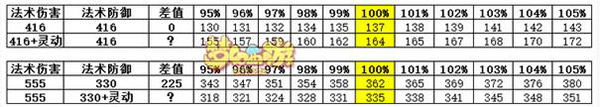上面的结论反过来也可以用,因为灵动九天的法伤法防增加数值是相同的。我们同样可以得出以下结论: