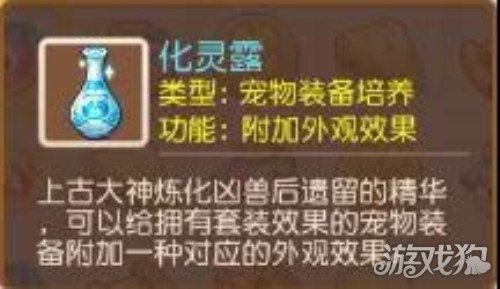 化灵露为消耗品,每个化灵露只能为1件宠物装备附加对应外观效果。如果大家想让一套只拥有套装技能的宠物装备激活宠物外观,那么这套宠物装备需要消耗3个化灵露。