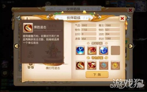 他的特色技能是【乘胜追击】,可以让李天王在横扫千军目标提前死亡时继续选择新的单位攻击,【追击】则可以在横扫千军杀死单位后再额外追加一次攻击。