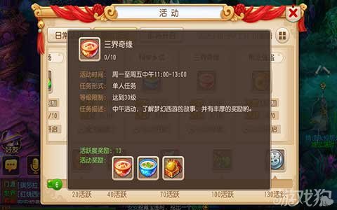 3、三界奇缘,这个是属于活动任务,而只要是稍微熟悉梦幻西游手游的玩家对于这个任务来说是分分钟就可以完成的。奖励当然是血药与蓝药了,而且不要任何的花费就可以坐收经验与道具的。