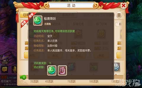 5、秘境降妖,每天必刷的闯关副本之一,玩家在闯关的时候会根据不同的等级获取不同的经验值。而玩的一般的玩家基本都是能够闯过前十关的,这样一来也是有一二十万经验的喔。