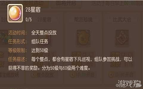 每天在整点的时候系统会提示28星宿下凡,玩家们更具系统提示在对应的地图中找到28星宿就可以了