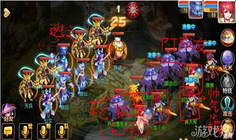 淘气童子作为主怪有一个特性,就是当其被封印的时候会逃跑,所以当队伍里有封系玩家的时候可以让封系封印一下童子,这样就可以让童子直接逃跑了。如果没有也可以直接将其击杀。后排4个天兵分门派别为大唐和狮驼岭,怪物伤害不高,前排怪物仙女门派为普陀山,散仙门派为龙宫或者方寸山。佛徒作为一只特殊的怪物,当队伍配置中有普陀山或者地府的玩家时,佛徒会自动逃跑。