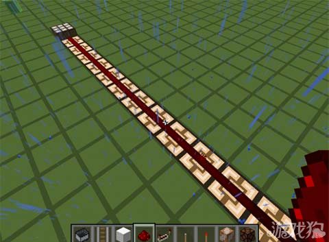2、摆上13格的红石(因为晴天时阳光传感器的传输极限是13格)