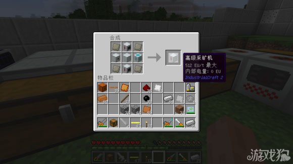 因为有传送机,所以高级采矿机已经不需要钻头了(可以挖黑曜石),只要扫描仪就行,自带400万储电量,可以在家里充满后,再带出去挖,不用拉电线。