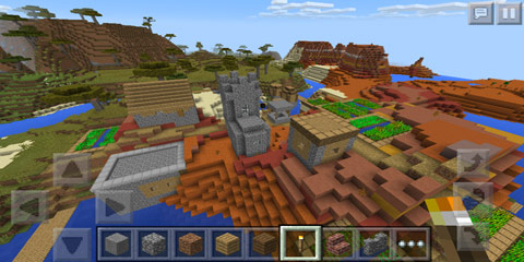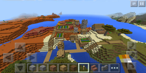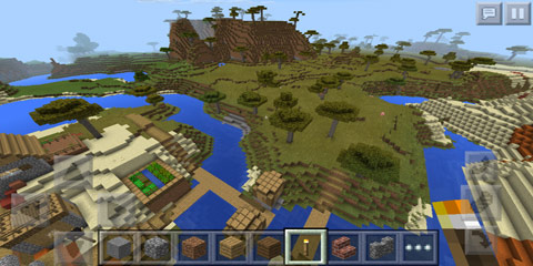 五彩山、热带、赤色大陆。玩家出生之后往右走,可以沿着岸边走,不一定要游泳。走一段距离就能看到村庄了,村庄在五彩大陆的边缘,附近主要以热带平原和赤色大陆为主,有五彩山。同时村庄也在海边,附近树木比较稀疏。可以玩生存,更适合建筑选址。种子:1405198392。