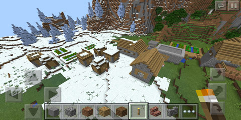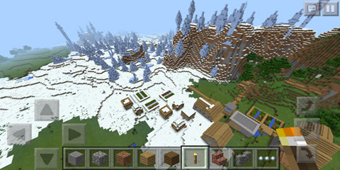 雪地村庄、冰刺塔、山脉。玩家出生点右前方,贴着山脚走穿过树林就是村庄了,离得很近。出生点后方贴着山脚走能找到一处鲜花山坡。村庄在雪地边缘,边上就是冰刺塔。挺适合生存以及做建筑,推荐玩家尝试。种子:1408803813。