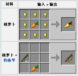 胡萝卜(Carrot)为一种可种植以及食用的食物类物品。食用恢复2点饥饿度。胡萝卜可以种植在耕地上,经历四个生长阶段后成熟,成熟后收获2-4个胡萝卜。胡萝卜也可以是僵尸的罕见掉落物。骨粉可以立即催熟胡萝卜。带有幸运魔咒的工具可以提高胡萝卜的掉落数量。 属性: 类型:食物 可烹饪:否 可堆叠:是(64) 作为合成原料: 胡萝卜也可以用于合成金萝卜。后者是酿造夜视药水的原料之一。 如何找到胡萝卜: 在游戏里自动生成的村庄里。 在废弃的废弃矿井里的箱子里。 僵尸的罕见掉落物。