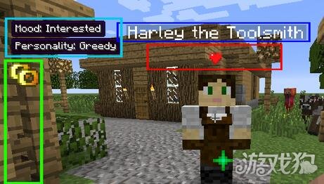生成的村庄中有各个职业的村民,玩家可以和他们自由互动。玩家还可以查看村民的信息,情绪等等,而且还可以让村民跟随,或者做一些简单的工作。