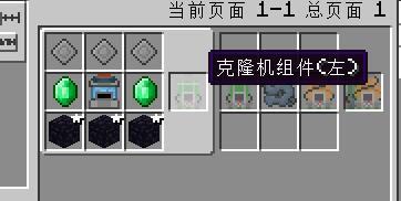 克隆机组件(右)的做法和左部组件的做法差不多,只不过把绿宝石换成了金锭。