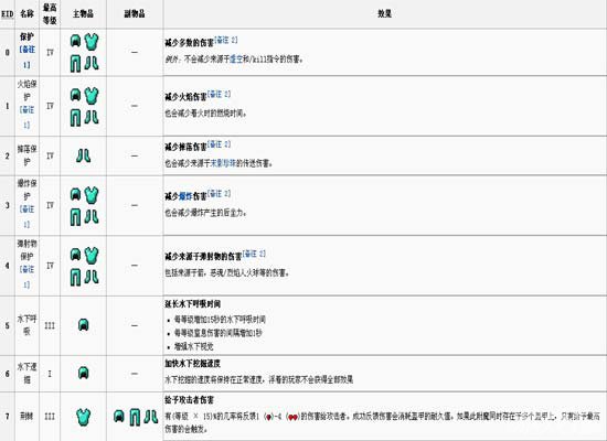 1、↑1.01.11.21.3保护,火焰保护,爆炸保护,弹射物保护都是相互独立的。