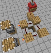 这里的两个电路运用大量红石火把以保证压缩性,但也正因为如此您需要注意南北向传输畸变。为了达到最大的延迟,请在建造时使得附着的火把都朝向东边或西边。为了最大限度地微调其延迟,您可以小心地调整各火炬的朝向。