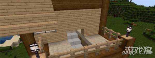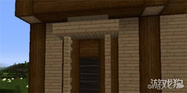 4.建造大门。接下来我们找一个地方开个门,并且用边框和楼梯、栅栏修饰美化一下。