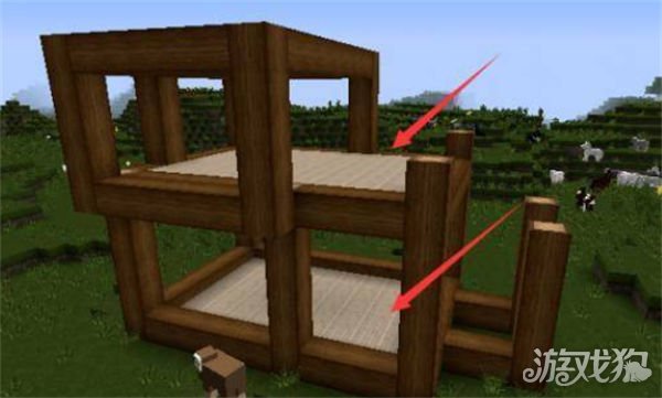 2.填充地板。在我们之前搭好的基架里,我们确定好地板的位置,开始填充地板。直到把上下两层楼的地板都铺好为止。现在我们先不用预留空位什么的,直接铺满就可以。