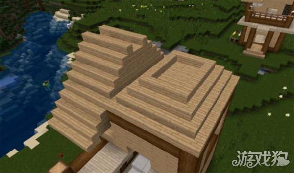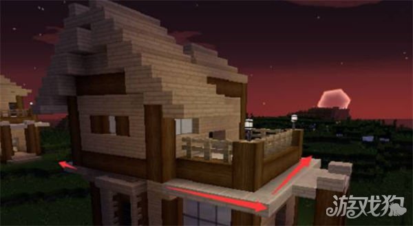 12.建造屋檐。我们可以在一楼和二楼的交界处用半砖建造一圈屋檐,再在二楼顶部用倒置楼梯也建造一圈屋檐。这样不仅显得美观大方,而且还能防止怪物爬上你的屋顶。