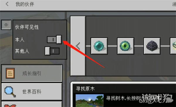 我的世界宠物狐狸怎么关闭?取消跟随方法一览。相信很多小伙伴已经迫不及待想要知道了,小编今天为大家带来了我的世界宠物狐狸怎么关闭的问题解答,方便大家快速掌握我的世界的详情。 我的世界宠物狐狸怎么关闭? 1、游戏中“狐狸”可以作为你的伙伴,在旁边一直陪着你。如果想要关闭宠物狐狸,首先点击屏幕上方的倒三角按钮。 2、点击“我的伙伴”按钮。 3、点击弹出的界面的左上角的小眼睛标志。 4、此时可以看到设置我的伙伴是否可见的选项,将对本人可见关闭即可,如果不想看到其他人的伙伴关闭其他人选项就可以了。