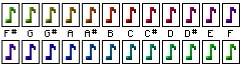 我的世界音乐电路相关知识介绍,玩家可以通过不同的电路或者方块来制作音乐播放器,其实跟生存战争的音乐播放器有很多相似的地方,一切由你喜好,当然你应该看完下面的介绍。 关于节拍: 一个四分音符是一分钟60/76=0.789,一个中续器一档是0.1秒,那么一个四分音符约=两个中续器下面是对照表 关于音色: 关于音阶 图形版本: 玩家也可以通过弹出音符的颜色大致的确定音高。