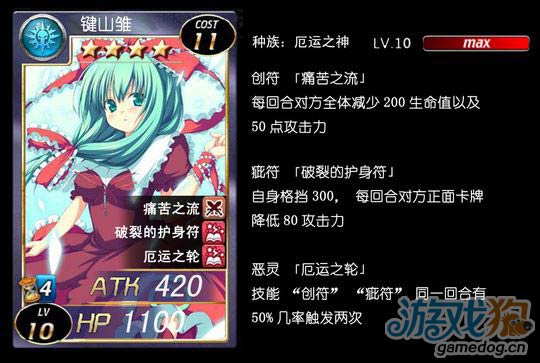 魔卡幻想秘神流人偶这张卡牌相信大家都没看过,下面是东方同人卡牌键山雏介绍:收集厄运的神明。所谓的疫病之神。不管是人类还是妖怪,只要靠近了她就会变得不幸。