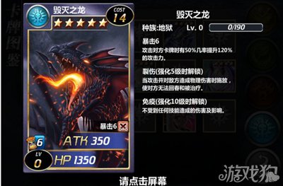 魔卡幻想毁灭之龙地狱五星卡牌分析,毁灭之龙是魔卡幻想地狱种族的五星卡牌,单论能力,黑龙不输金属,但在五星龙族三兄弟中它是最弱的一个,下面请看魔卡幻想毁灭之龙地狱五星卡牌分析。