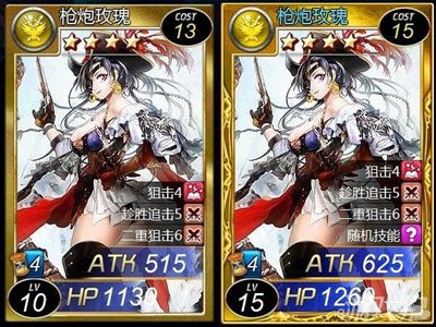 非常漂亮的一张头像卡 不过对于一张4星卡来说 实力算是能拿的出手 一旦上场即便不触发乘胜追击 靠着3下狙击也够人喝一壶了 早上场对面卡少打击面集中效果很好 后上场直接3下狙击在触发趁胜追击很有可能改变战局 二维方面血量是惨的一塌糊涂 攻击虽然算不上高 也在能接受的范围之内 这卡小弟我用了很久 很是喜欢