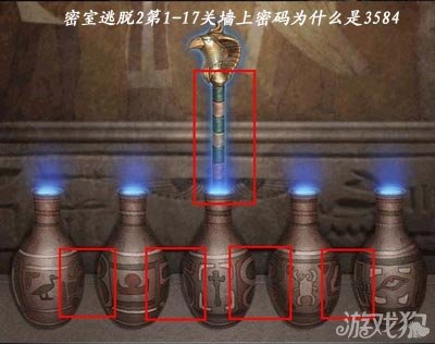 密室逃脱2关卡第1-17关墙上密码为什么是3584,这是游戏中很多玩家都会问到的一个问题。下面小编为大家带来的就是相关的游戏解答,希望大家喜欢。 仔细看两个瓶子中间绿色的花纹,数字被分开各占半边,合起来就是四个数字。