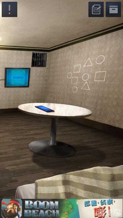 拼图完成后就可以出去了,但是玩家不要太着急。观察墙上的三种形状,记住每个形状有几个,然后点击桌上的ipad。