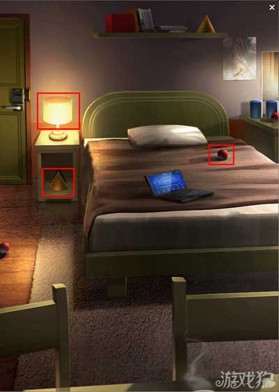 得到门卡后也不要慌着通关,通过笔记本上的提示,在房间中仔细数一数圆锥,圆柱,圆球状的东西有多少。