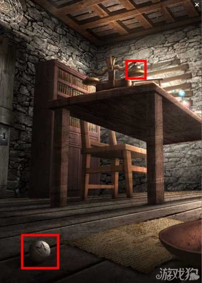 首先在地上找到一个标记着M的小球。接着在卓上的天平中拿到一个砝码。