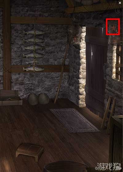 接着在门口墙上挂着的装着海星的网笼中找到一个海星,即得到第二个星星。
