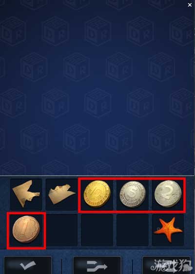 在工具来将钱包分解,从钱包中得到10,5,2,1的硬币,记住硬币的颜色。