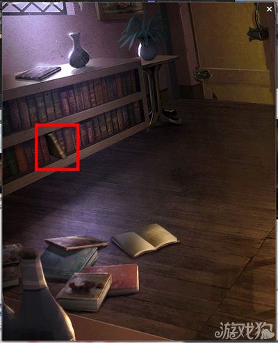 将画面拖到左边,在书柜中有一个突出来的,将其捡起。