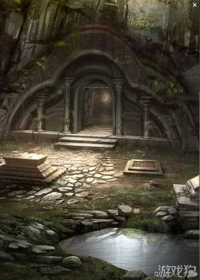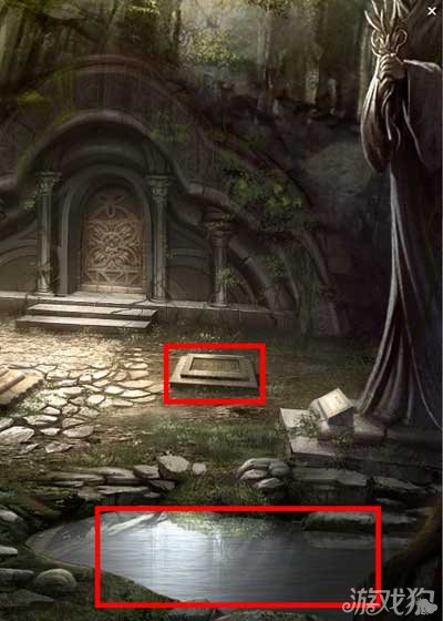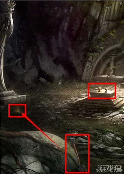 先将地上的铲子捡起,然后用铲子在雕像的脚下挖一个微微发光的地方,得到一个金色的杯子。然后点击中间的石台。