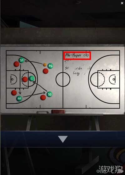 在白板上是战术安排。记住能看到PG是几号球员。记住战术中传球的顺序。