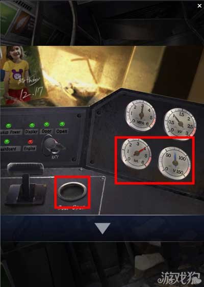 拿到钥匙后回到驾驶舱,用钥匙启动列车,按下按钮将舱门打开。记住旁边仪表上的KA和V所指的数值。