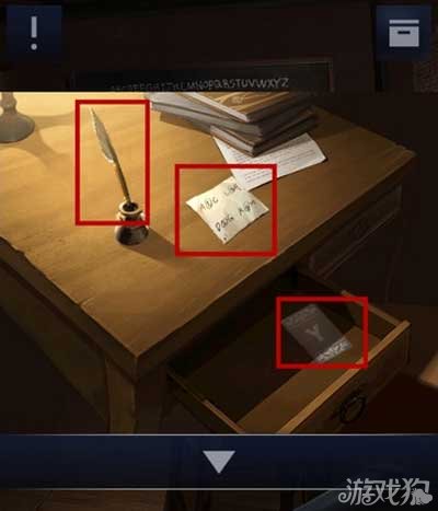 1、首先我们需要先找到屋内的一些物品,分别是四张卡片一根笔、一张纸条和一本书。上图有三张卡片。