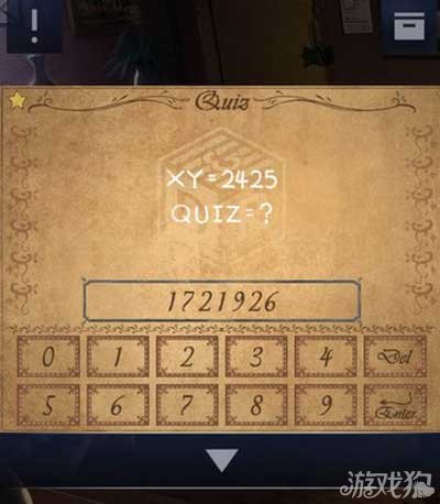 4、找到地板上的一本书,根据要求输入密码1721926。密码是根据每一个字母在26个字母中排列的顺序得出的,得到一颗星星