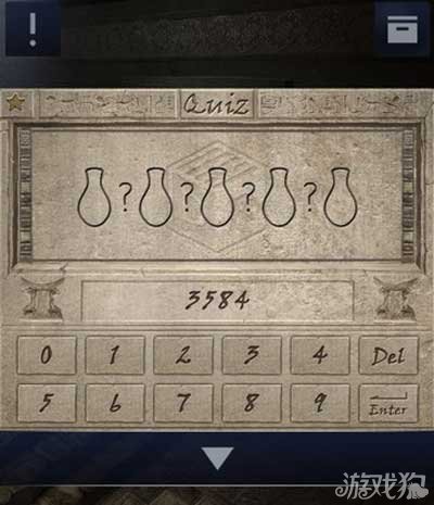 进入之后输入密码3584,得到第二颗星星;就在刚才那5个瓶子中,将相邻的两个瓶子合在一起,花纹拼成的图案就是答案的数字。