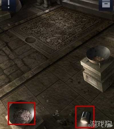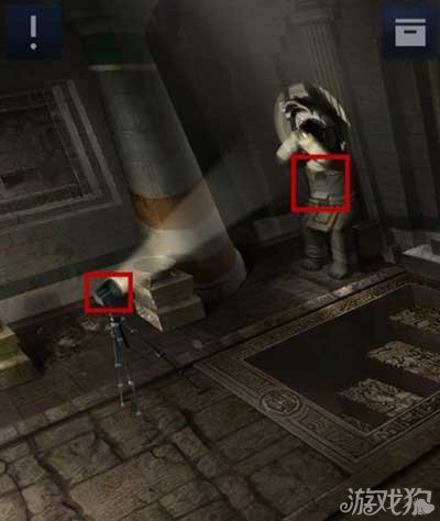 3、将手电筒放在中间的三脚架中,可以得到左边石像胸口的石珠;