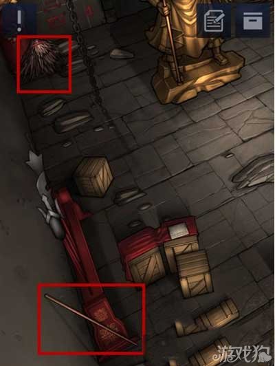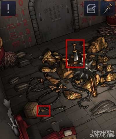 砍断铁链后铁锤掉下来将关公像砸毁,从关公像中能得到一把龙刀。旁边的碎片中能找到一颗星星。