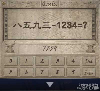 而本关的Quiz,大概是设计给外国人,对应门两边的提示来破解的,不过对于中国玩家来说,这就是一道简单的四位数减法,就算没有提示也超级简单有没有。